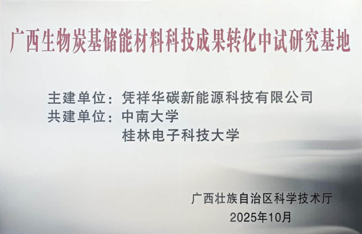 近日,广西壮族自治区科技厅公布了《第六批自治区科技成果转化中试研究基地名单的通知》(桂科发〔2025〕413号),球王会联合凭祥华碳新能源科技有限公司、桂林电子科技大学共建的“广西生物炭基储能材科技成果转化中试研究基地”成功获批。