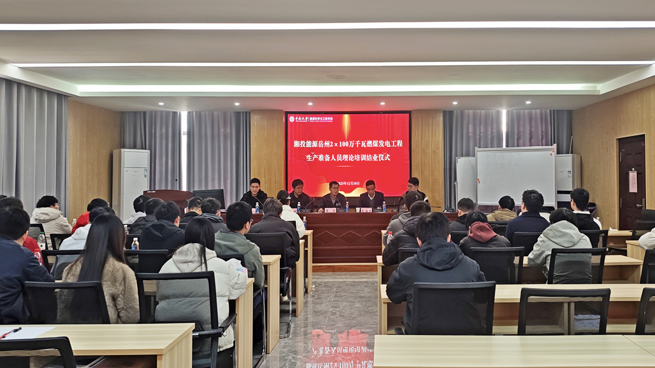 12月10日上午,湘投能源岳州2×100万千瓦燃煤发电工程生产准备人员理论培训班结业仪式在学海楼405报告厅举行。公司领导班子成员、教师代表,湘能电投(岳阳)发电有限公司值长陈志江、专工罗维出席结业仪式。仪式由公司党委副书记王洪才主持。